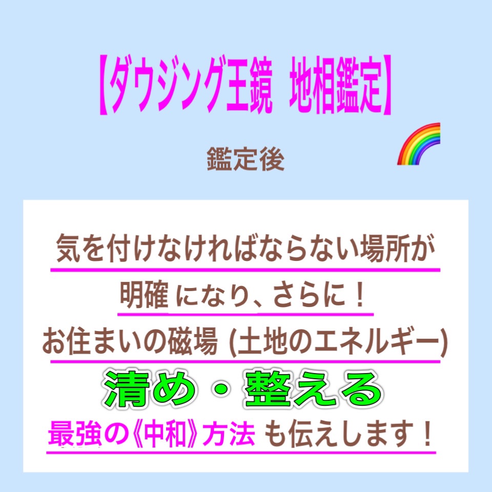 【ダウジング王鏡 地相鑑定】ご依頼の方へ 《地相鑑定》後、 気を付けなければならない場所が 明確になりますょ! さらに《中和》する 最強の方法を《2つ》 お伝えしております🇯🇵 身を守るための《地相鑑定》です! ご縁のある方へ 繋がりますように✨